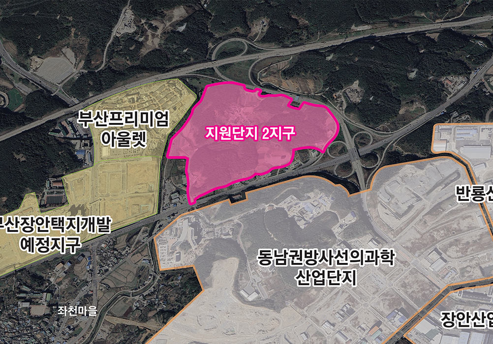 2지구는 동남권 방사선 의ㆍ과학 일반산업단지, 장안지구 택지개발사업구역 등과 접하고 있어 향후 주변지역과의 연계를 통한개발 가능성이 높은 지역입니다.