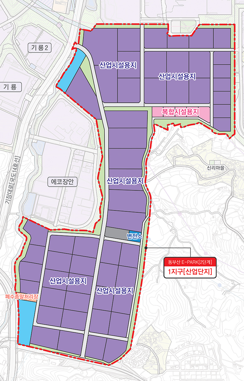 1지구는 동부산이파크(E-PARK), 오리, 기룡,에코장안일반산업단지 등과 연접해있고,