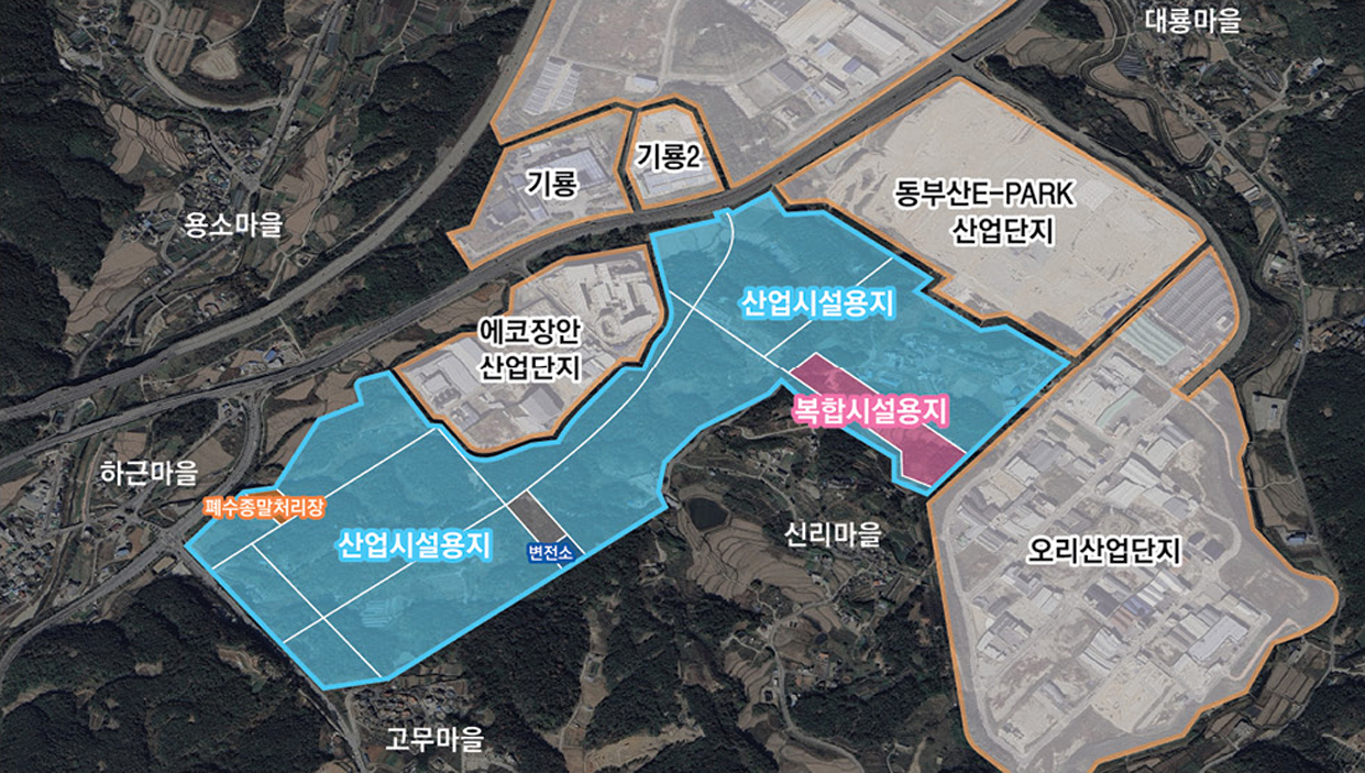 1지구는 동부산이파크(E-PARK), 오리, 기룡,에코장안일반산업단지 등과 연접해있고,